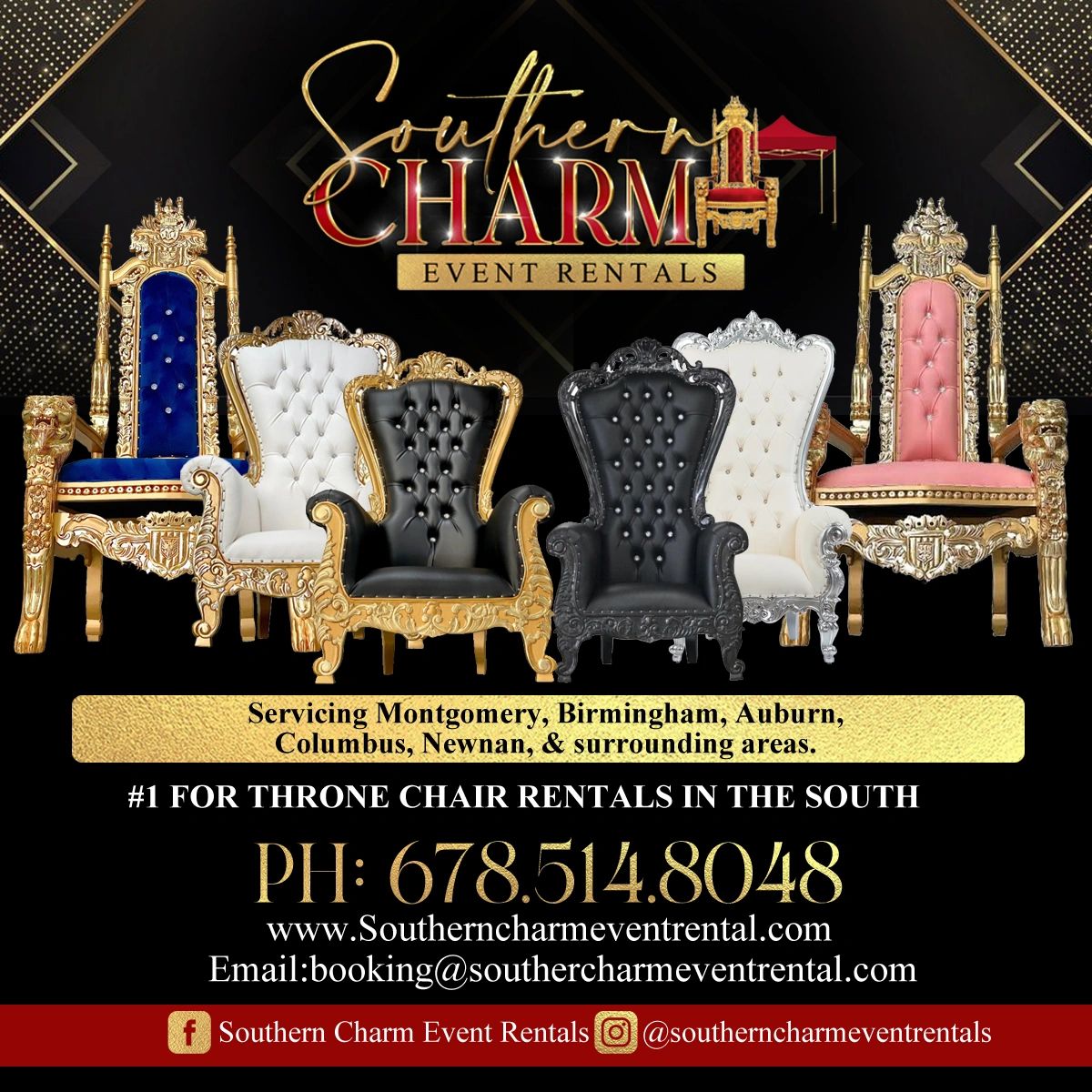We Specialize in rental equipment for photoshoots, birthday parties, baby showers, gender reveals, weddings, receptions, retirement parties & more! Servicing Montgomery, Birmingham, Auburn, Columbus, Newnan, Atlanta and surrounding areas.